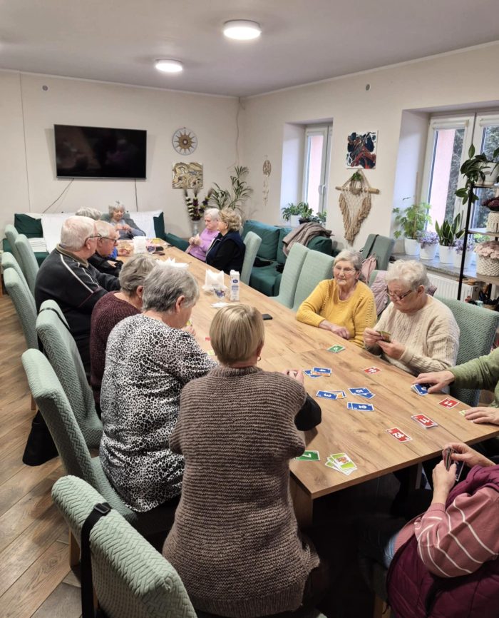 Czas wolny seniorzy spędzali również na grach karcianych, które sprzyjają integracji oraz wspierają pamięć, koncentrację i logiczne myślenie.