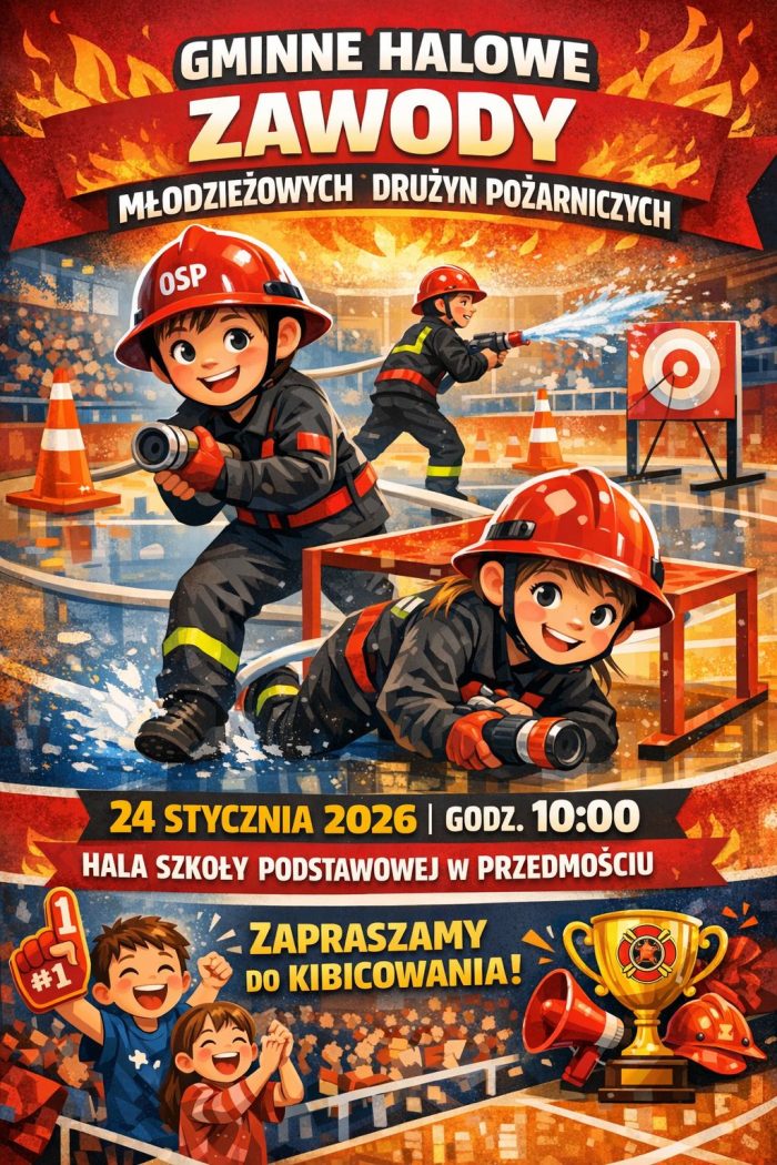 Zapraszamy mieszkańców i sympatyków pożarnictwa na Gminne Halowe Zawody Młodzieżowych Drużyn Pożarniczych.