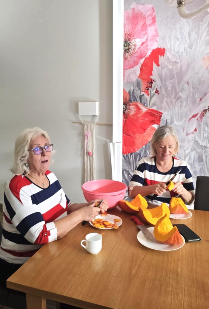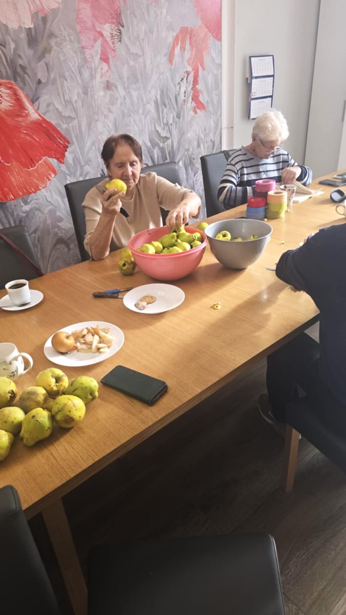 W naszej pracowni kulinarnej również działo się pysznie! Seniorzy wspólnie przygotowali złocistą zupę dyniową, aromatyczne przetwory z pigwy oraz pyszne rogaliki, które szybko zniknęły ze stołu. Było nie tylko smacznie, ale i bardzo wesoło – gotowanie w takim towarzystwie to czysta przyjemność!