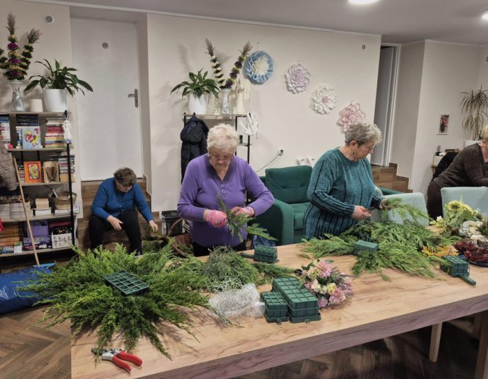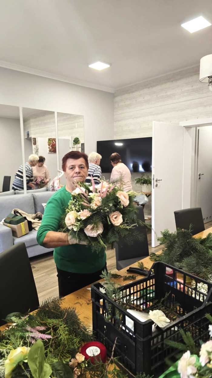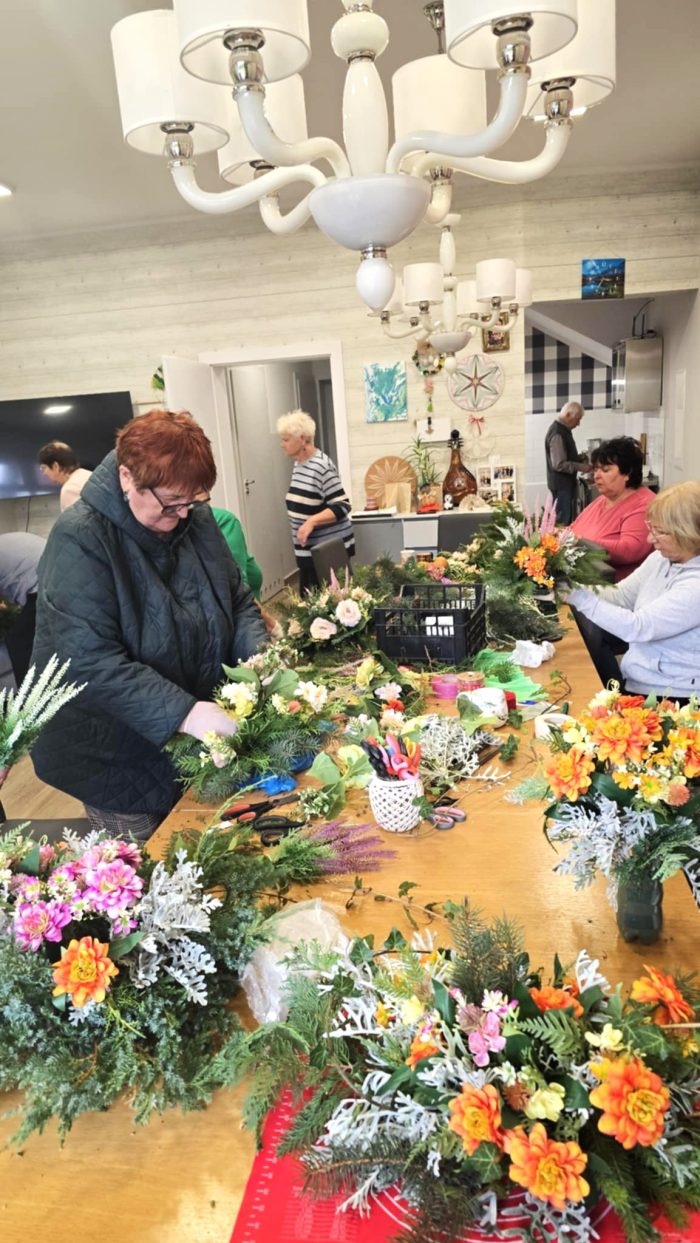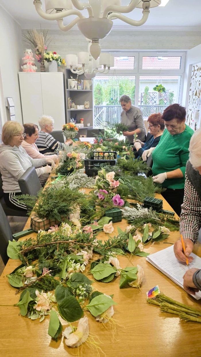 Z okazji Święta Zmarłych uczestnicy przygotowali własnoręcznie wianki na groby – powstały prawdziwe małe dzieła sztuki, pełne serca i refleksji. Nie zabrakło też ruchu – jak zawsze dbamy o zdrowie, więc odbyły się ćwiczenia z trenerką Kasią, które przyniosły wszystkim dużo energii i uśmiechu.
