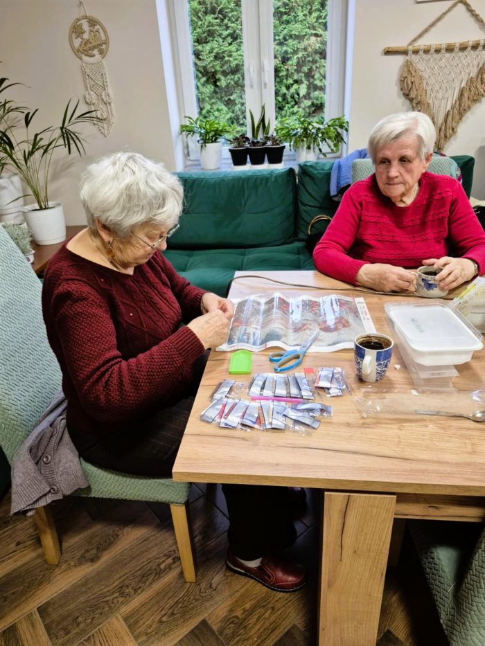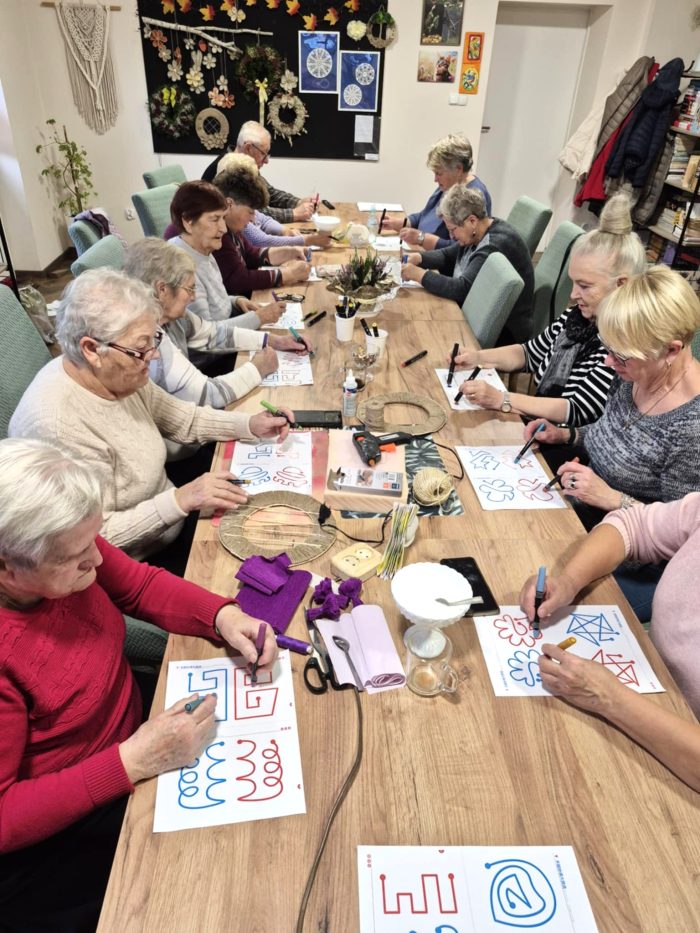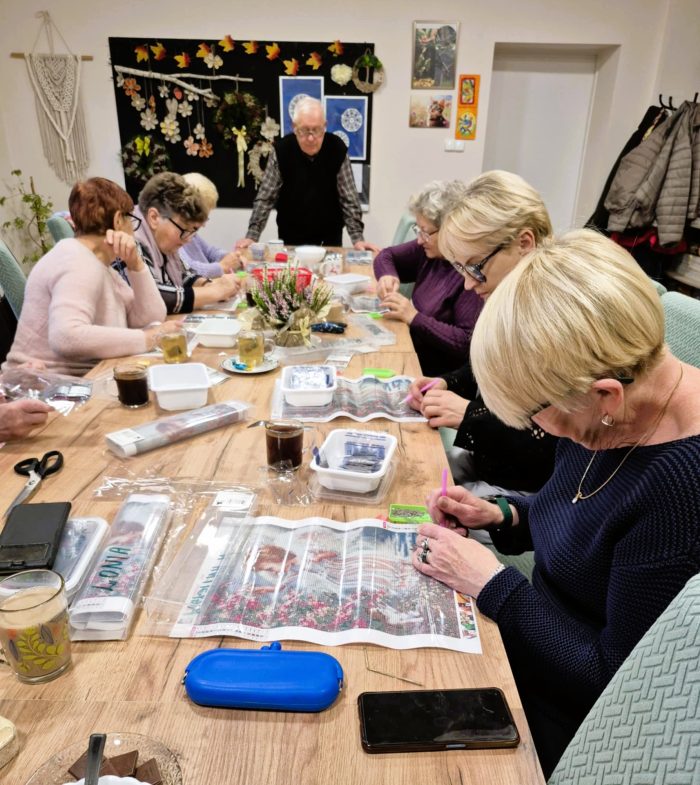 Dla treningu umysłu seniorzy rozwiązywali łamigłówki i zagadki logiczne, które dostarczyły wiele radości i pobudziły kreatywne myślenie. Niektórzy kontynuowali też prace nad haftem diamentowym, wymagającym precyzji i cierpliwości, ale dającym wiele satysfakcji.