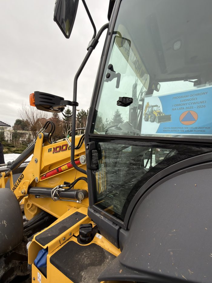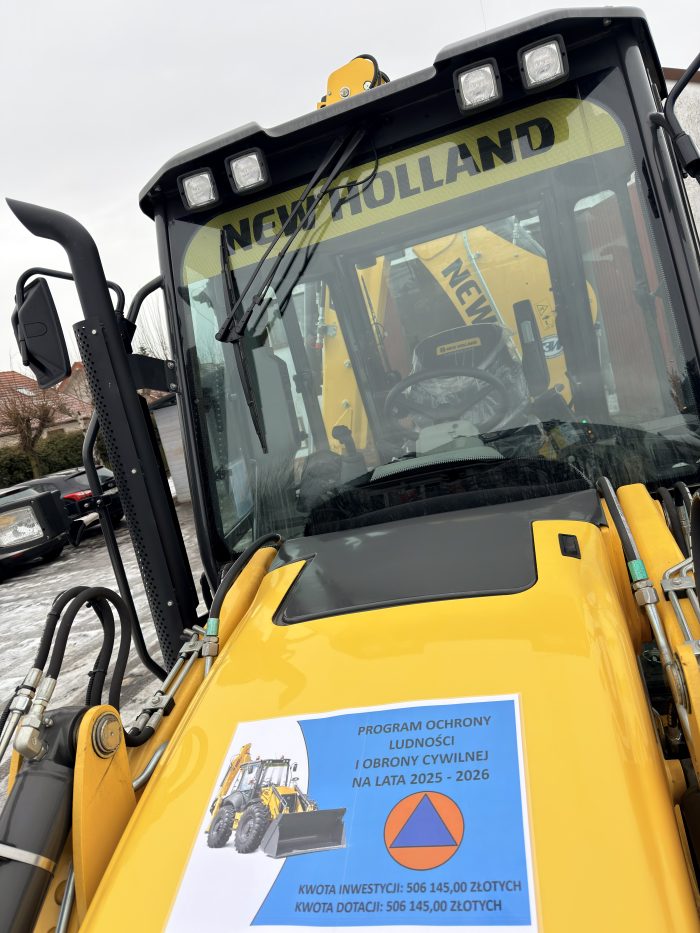 W ramach realizacji zadania zleconego z zakresu administracji rządowej w obszarze 2: Zabezpieczenie logistyczne i zapewnienie ciągłości dostaw, ujętego w Programie Ochrony Ludności i Obrony Cywilnej na lata 2025–2026 – Gmina Głogów zakupiła fabrycznie nową koparko-ładowarkę NEW HOLLAND B100D wraz z osprzętem.