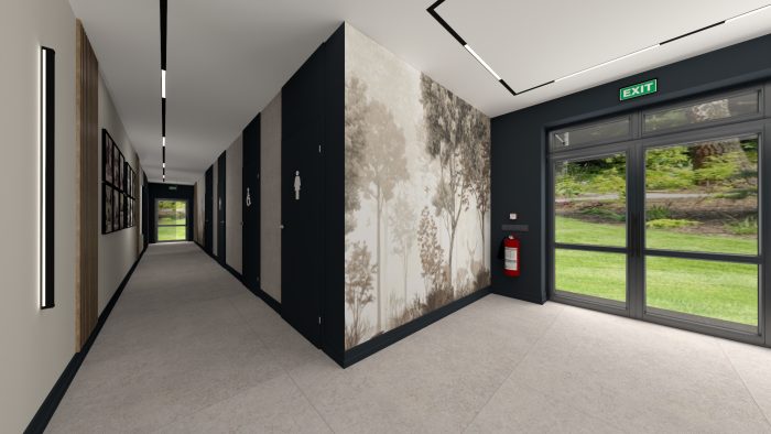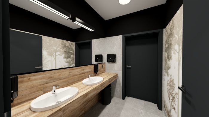 Dla świetlicy w Wilkowie przygotowano projekt aranżacji wnętrz: sali głównej, korytarza i łazienek. Obecnie trwa wybór materiałów wykończeniowych. Autorem aranżacji jest Studio White Architektura Wnętrz Anna Szymczak Biały z Głogowa.
