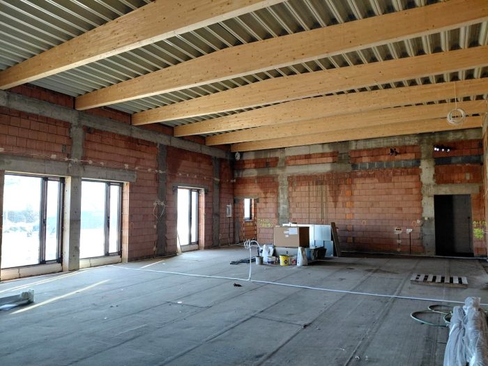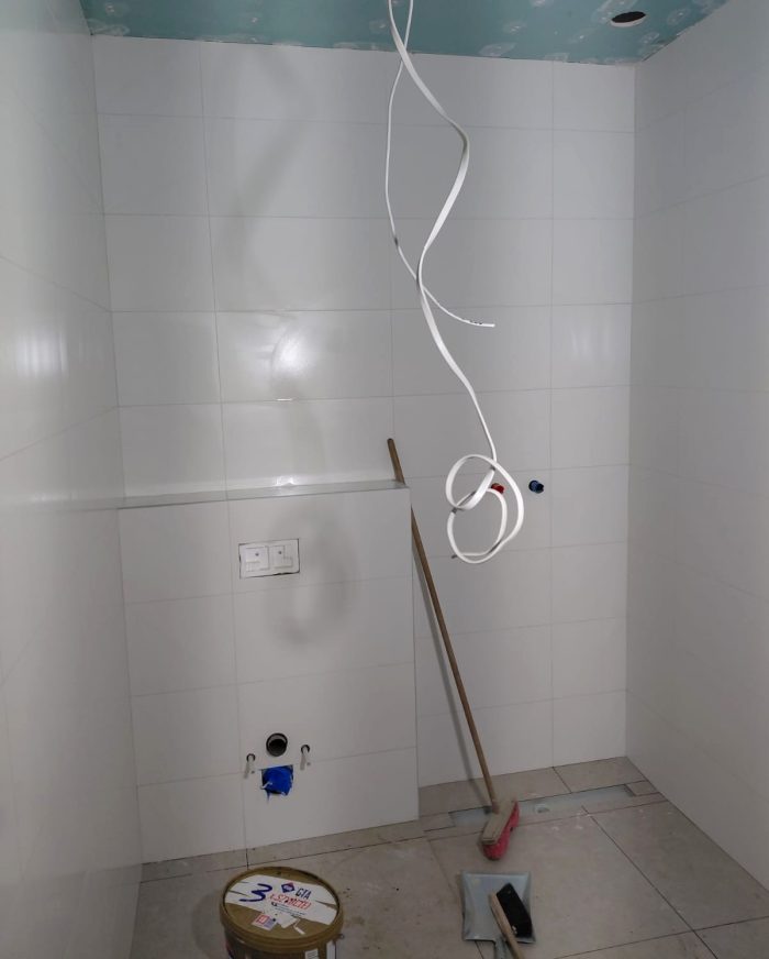 Obecnie w budynku remizy OSP trwają intensywne prace wykończeniowe – w łazienkach układane są już kafelki. Kolejnym krokiem będzie montaż armatury, oświetlenia oraz drzwi wewnętrznych. Prace idą pełną parą!