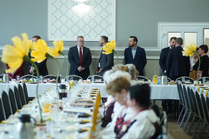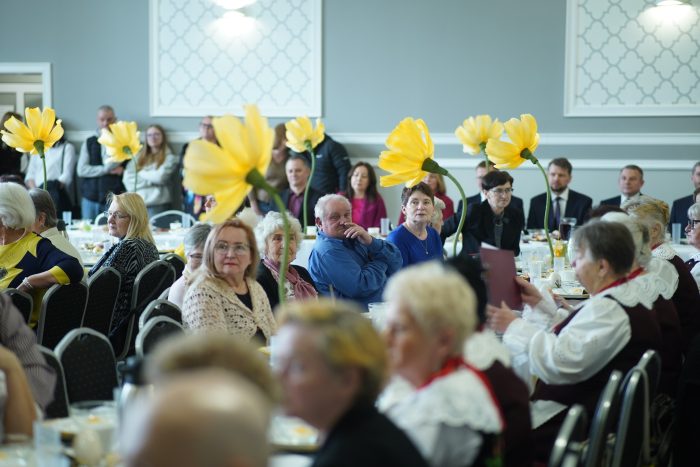 Mnóstwo osób zjawiło się w niedzielne popołudnie 29 marca w sali Centrum Biblioteczno-Kulturalne Gminy Głogów w Przedmościu, aby wziąć udział w tradycyjnym spotkaniu wielkanocnym. Wśród nich byli m.in. radni i sołtysi Gminy Głogów, seniorzy (w tym członkowie gminnych klubów seniora) zespoły folklorystyczne oraz zaproszeni goście. Na scenie od razu zrobiło się wesoło i kolorowo – nie tylko za sprawą pięknych ozdób przygotowanych przez Panie z CBK, ale także dzięki wspaniałemu występowi dzieci ze Szkoły Podstawowej im. Jana Pawła II w Przedmościu, którym bardzo serdecznie dziękujemy, podobnie jak ich opiekunkom: Pani Paulinie Frankowskiej i Pani Dyrektor Elżbiecie Smorczewskiej.