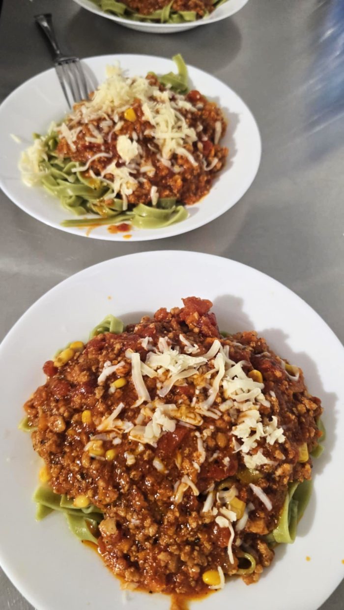 Nie zabrakło także wspólnego gotowania. W ramach zajęć kulinarnych uczestnicy przygotowywali spaghetti – praca zespołowa w kuchni sprzyjała integracji, współpracy i aktywizacji w codziennych czynnościach.