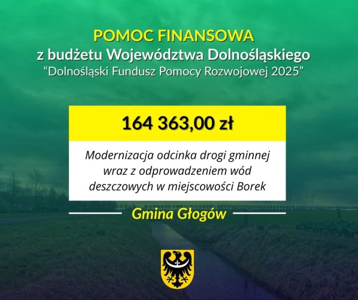 Na realizację inwestycji gmina otrzymała dofinansowanie w wysokości 164.363,00 zł z Dolnośląskiego Funduszu Pomocy Rozwojowej 2025, a całkowita wartość projektu wyniosła 250 798,60 zł.